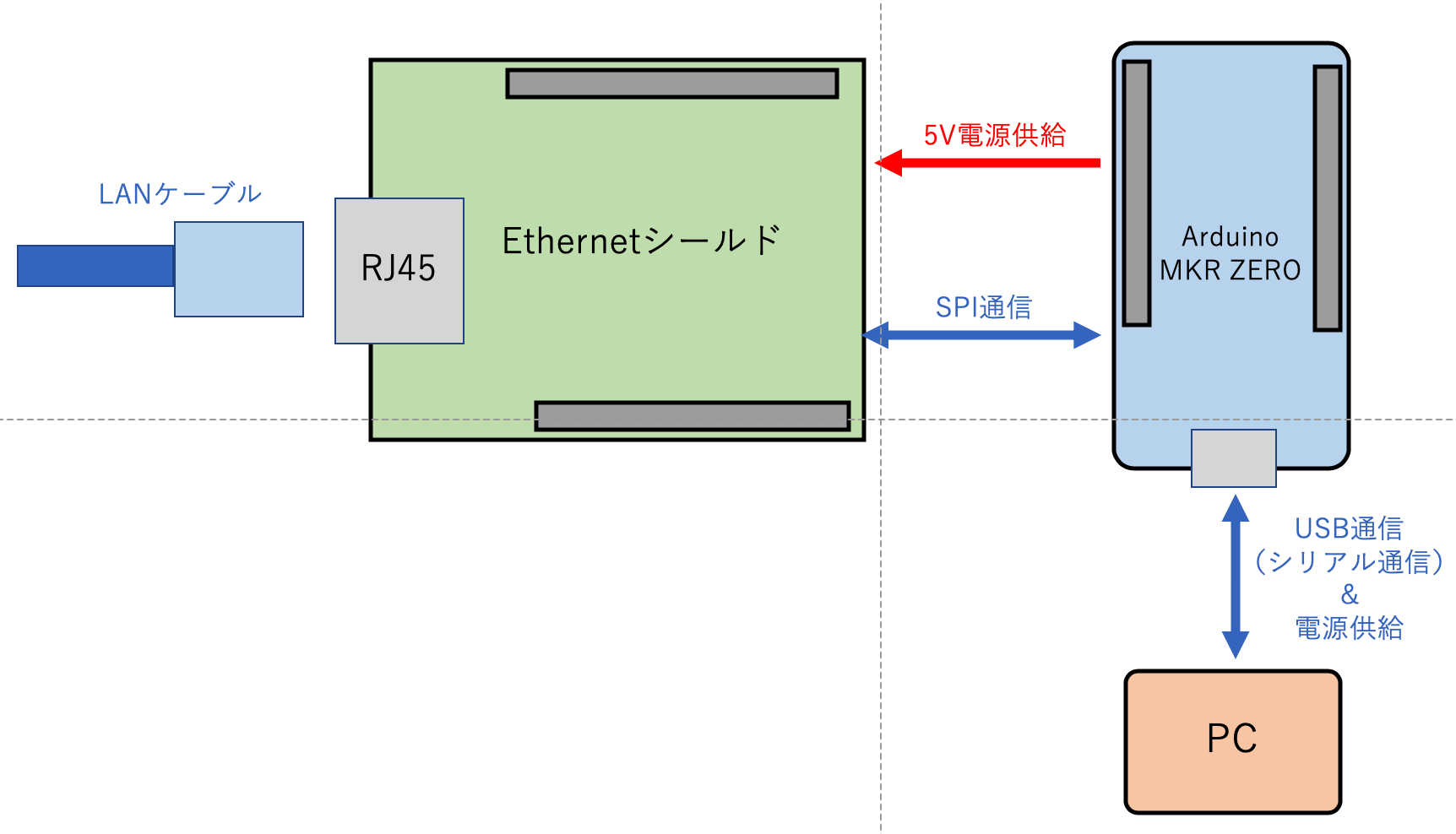 Arduino MKR ZERO用のEthernetシールドは持っていなかったので、Arduino UNO用のEthernetシールドをArduino MKR ZEROに接続して動かしてみました。